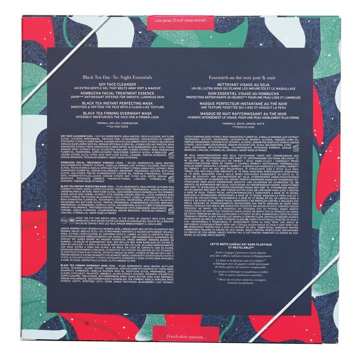 Fresh Black Tea Set: Soy Face Cleanser+Kombucha F.T. Essence+Instant Perfecting Mask+Firming Overnight Mask 4pcs