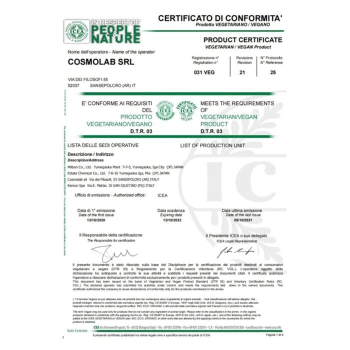 031 VEG 95 ICEA ECO BIO COSMETICS certification no.