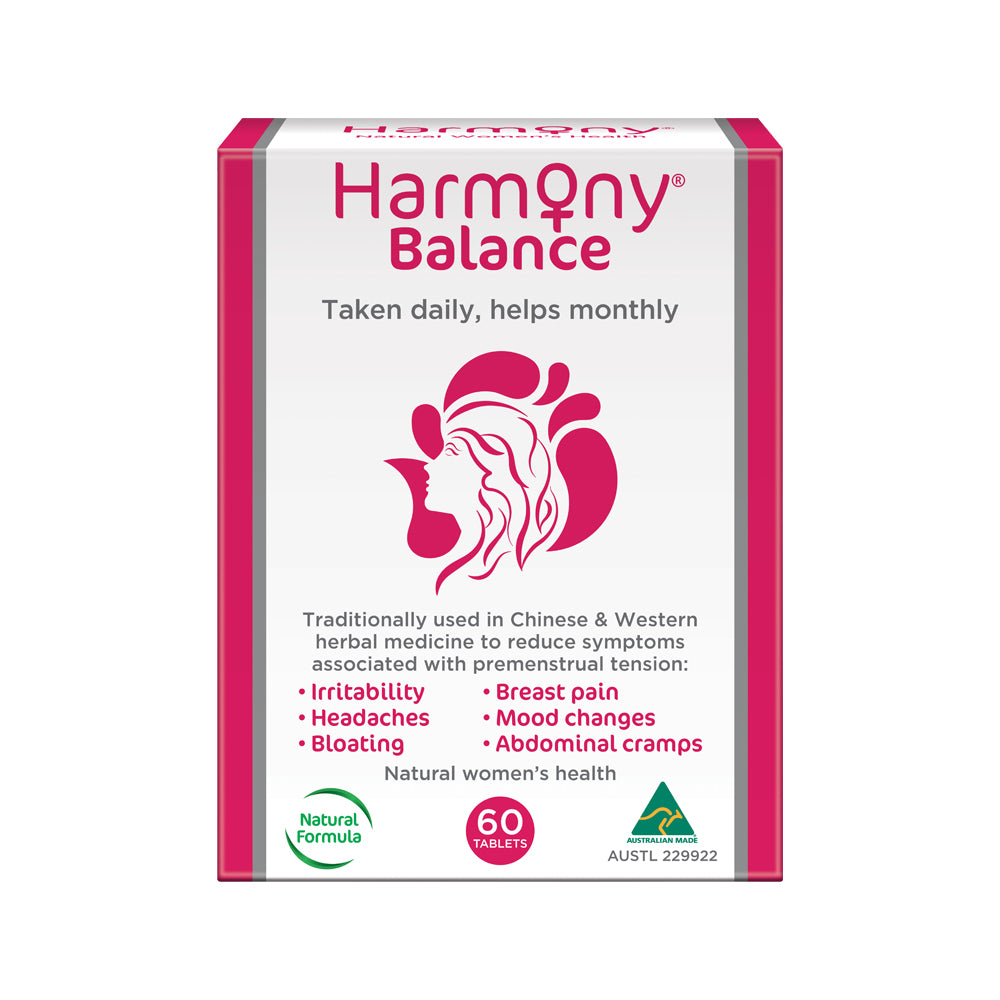 Harmony® Balance was formulated to support women’s Unbalanced hormones, and offer relief from the symptoms of Pre Menstrual Syndrome (PMS), abdominal cramps and period pain. It is a combination of 4 herbs, Vitamins D3 and B6, with scientific support on the primary herb Vitex agnus-castus.