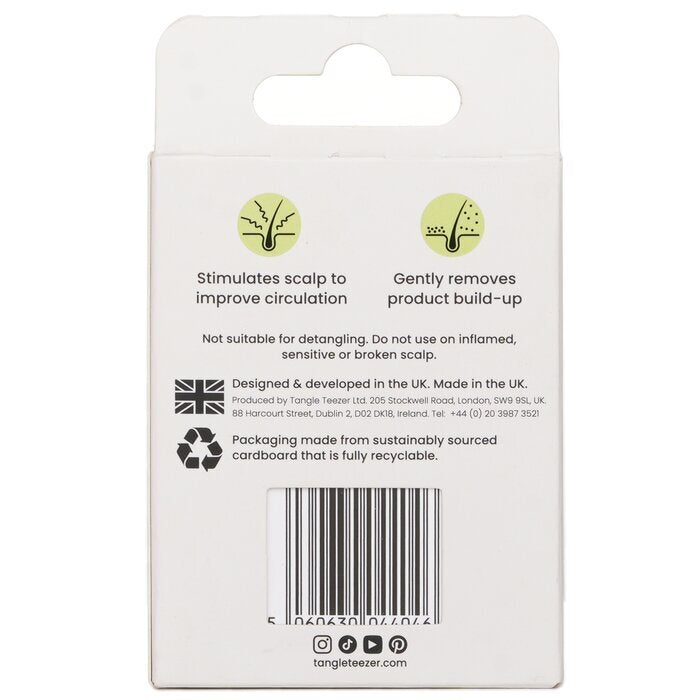 Features dual teeth to detoxify the scalp & clear product build-up.